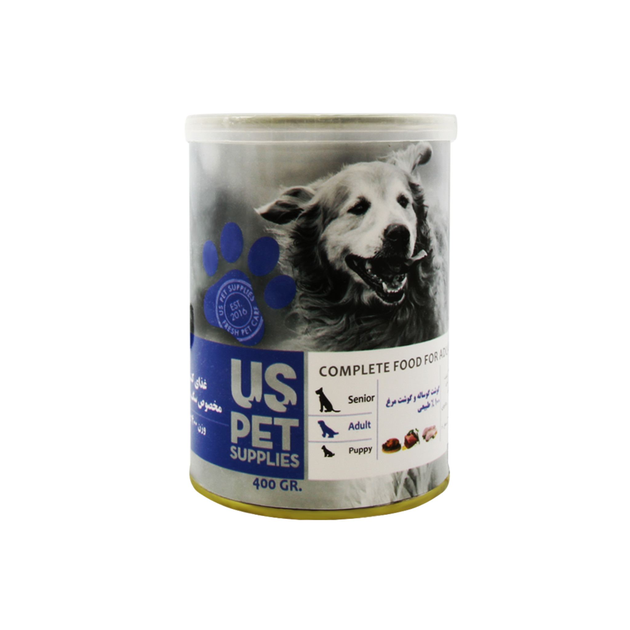 کنسرو سگ بالغ یو اس پت طعم گوشت و مرغ وزن ۴۰۰ گرم