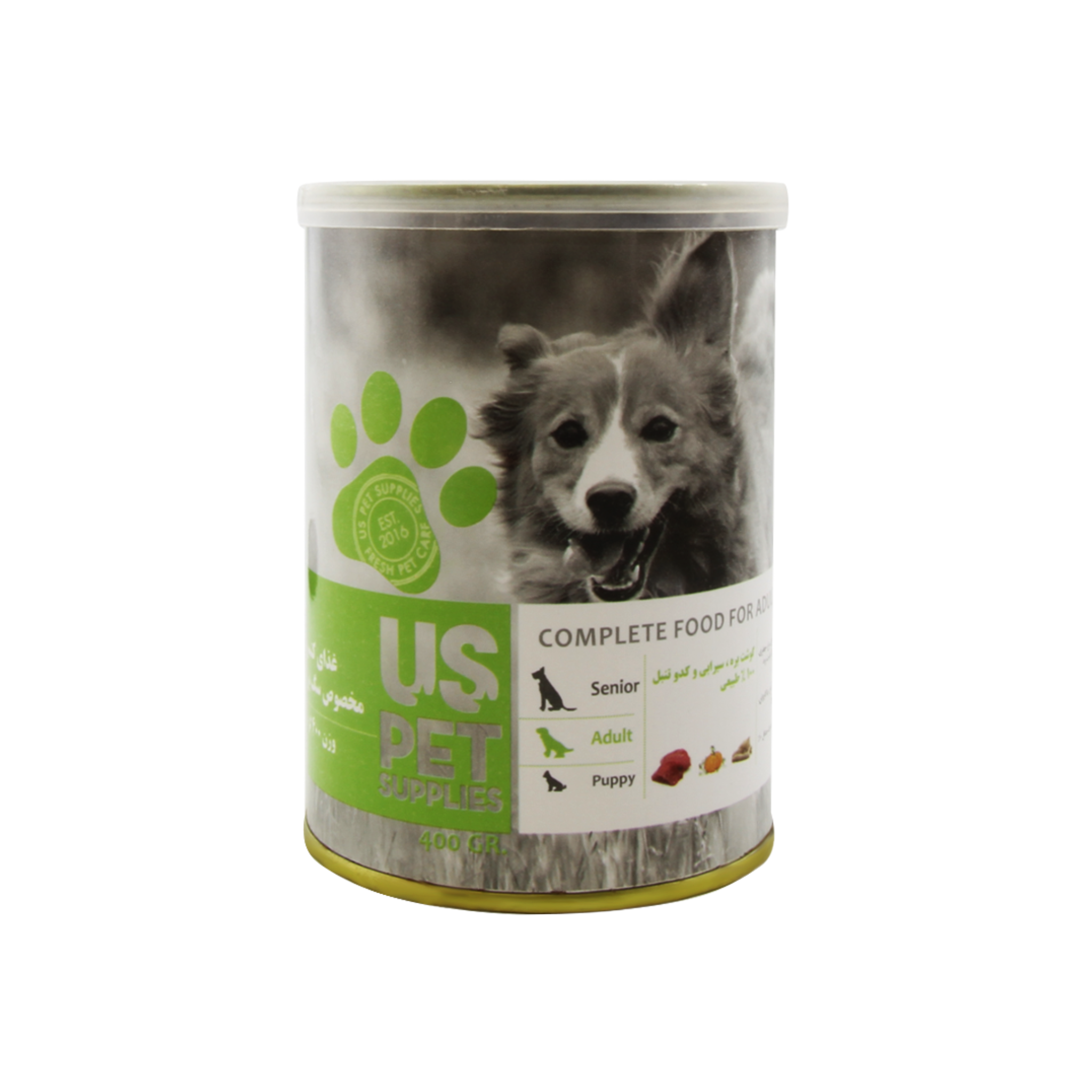 کنسرو سگ بالغ یو اس پت طعم بره و سیرابی و کدوتنبل وزن ۴۰۰ گرم
