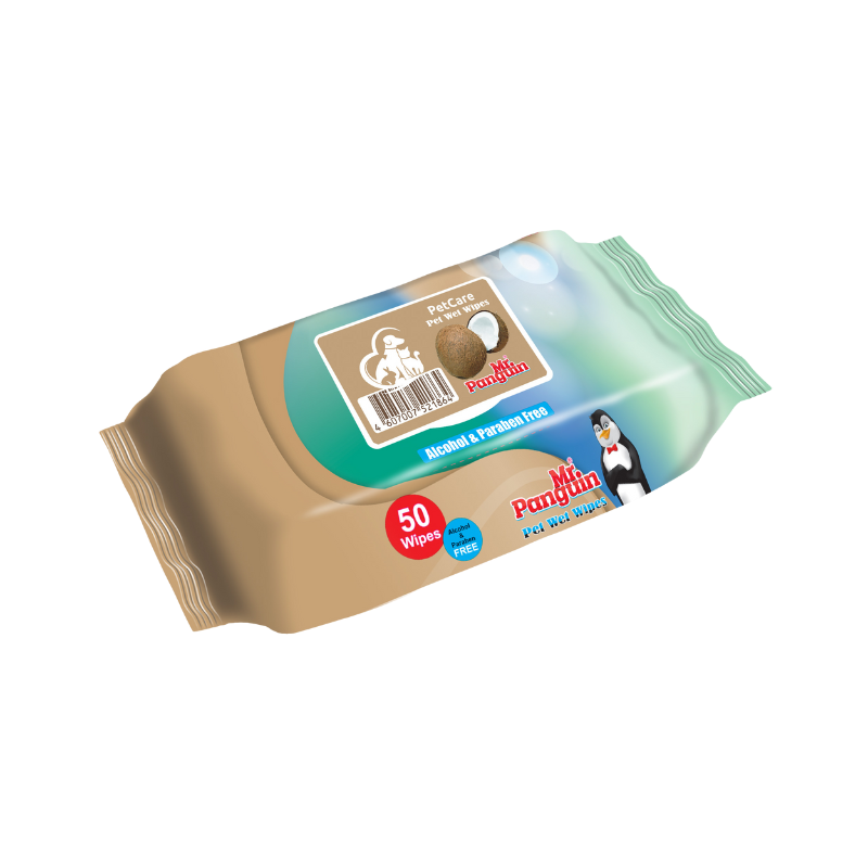 دستمال مرطوب پاکتی سگ و گربه مسترپنگوئن ۵۰ برگ